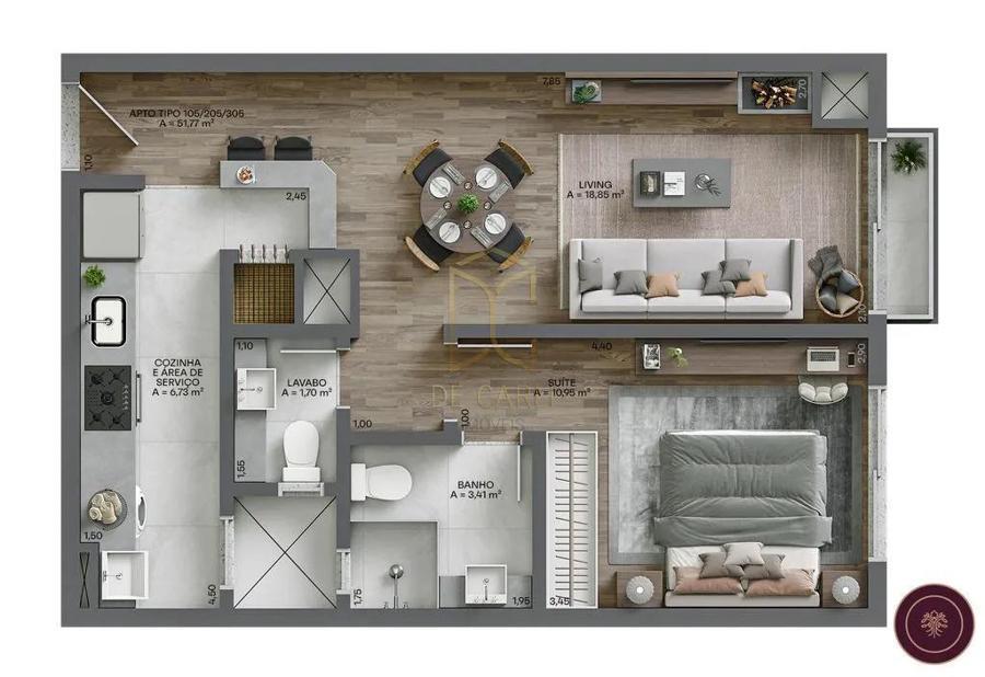 Viva o melhor que a Serra Gaúcha tem a te oferecer, ter o privilégio de desfrutar do bem viver e o bem morar, a tranquilidade e a qualidade de vida que vem proporcionando aos moradores. Viva esta experiência juntamente com a tua família e amigos. Apartamento medindo 57m² de área privativa. Composto por uma suíte, lavabo, cozinha integrada com área de serviço, esperas para lareira, split, 1 box de garagem além de uma infraestrutura completa que o residencial oferece composto por salão de festas com espaço gourmet, lounge com lareira, dois pergolados com fogo de chão, horta, academia ao ar livre, pomar, jardim das Oliveiras e mini vinhedo. PREVISÃO DE ENTREGA: Junho 2025