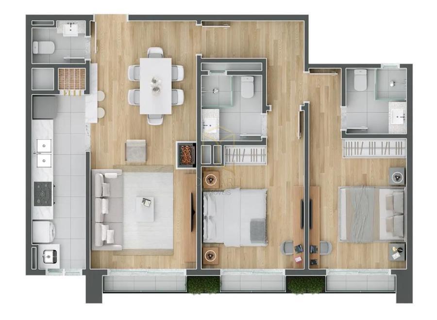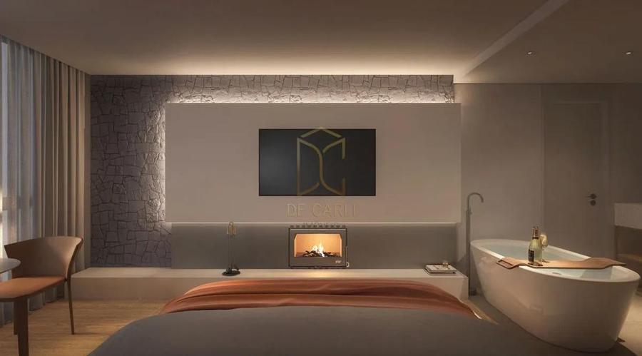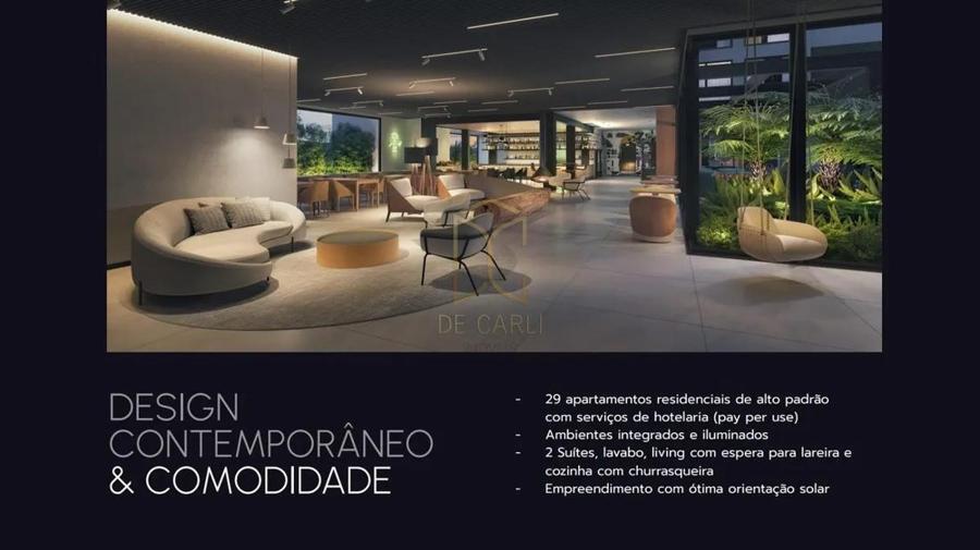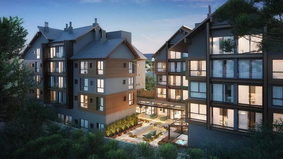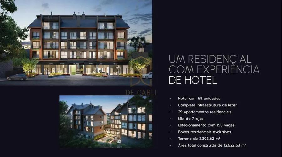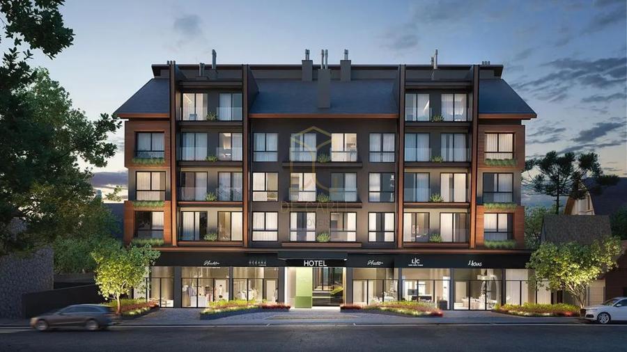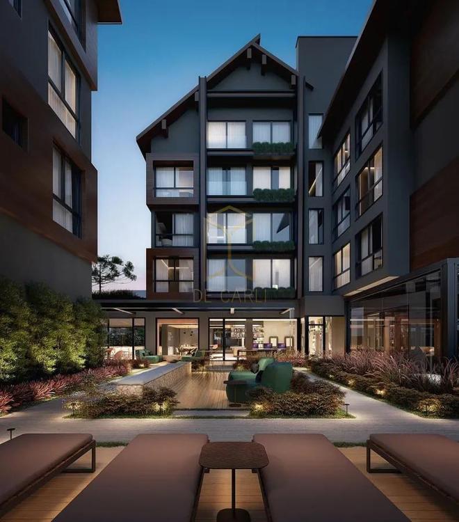 Residencial Garibaldi 576, localizado no centro de Gramado. Apartamento 02 dormitórios suítes, sala de estar, sala de jantar. lareira, lavabo, cozinha e área de serviço, 01 vaga de garagem, living com espera para lareira cozinha com churrasqueira.