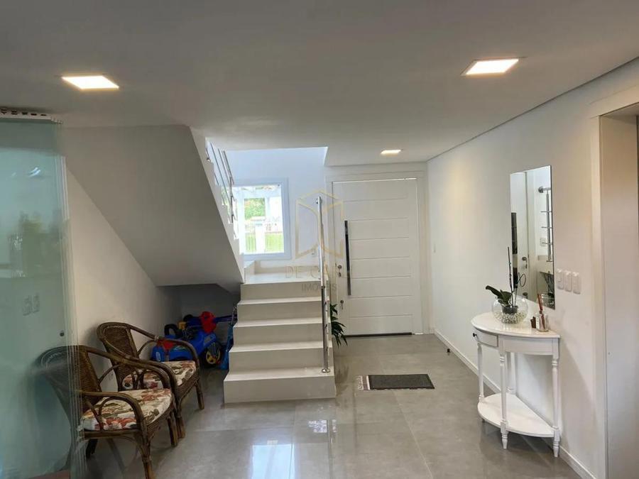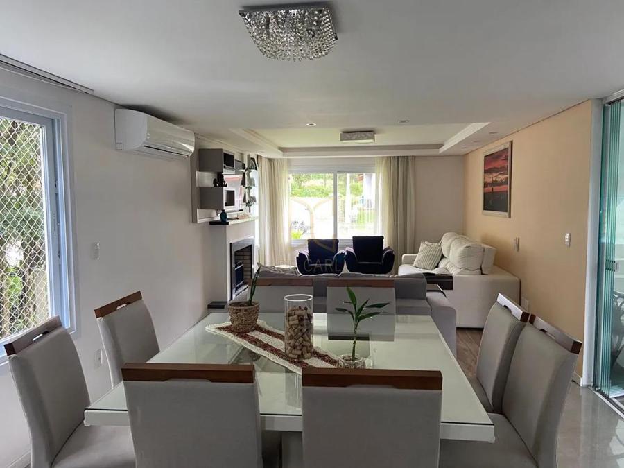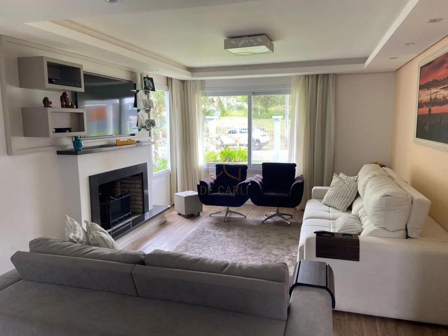 Casa mobiliada e decorada em alvenaria de 02 pavimentos sendo a parte térrea com 116,25 m² de área construída. No térreo possui 1 dormitório para casal/escritorio, banheiro social, espaço gourmet divididos por porta de vidro para as sala de estar, jantar e cozinha integradas, , despensa e lavanderia e lareira. No Segundo pavimento é composto por 3 suítes mais uma sala de estar íntimo, no mezanino sacadas e terraços para as suítes. No Subsolo possui um depósito com 17,25 m² e ainda uma espaço livre de 99,00 m2 para futuro fechamento e aproveitamento e duas vagas de garagem. Muitos detalhes que você pode se encantar, agende uma visita conosco e confira de pertinho cada detalhe desta belíssima casa.