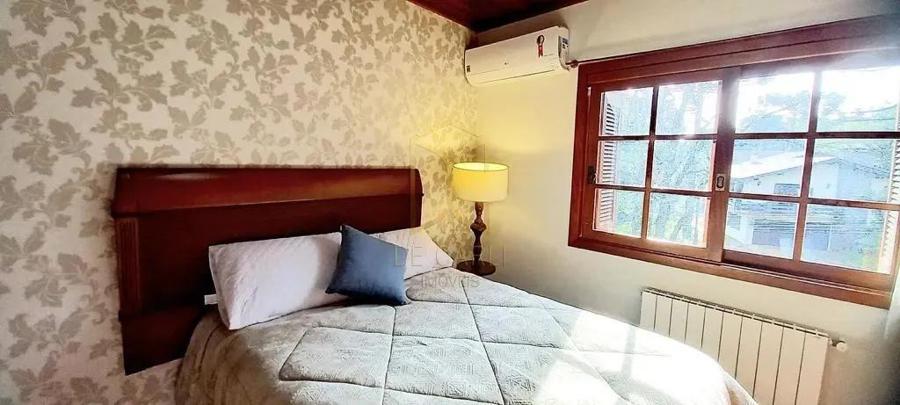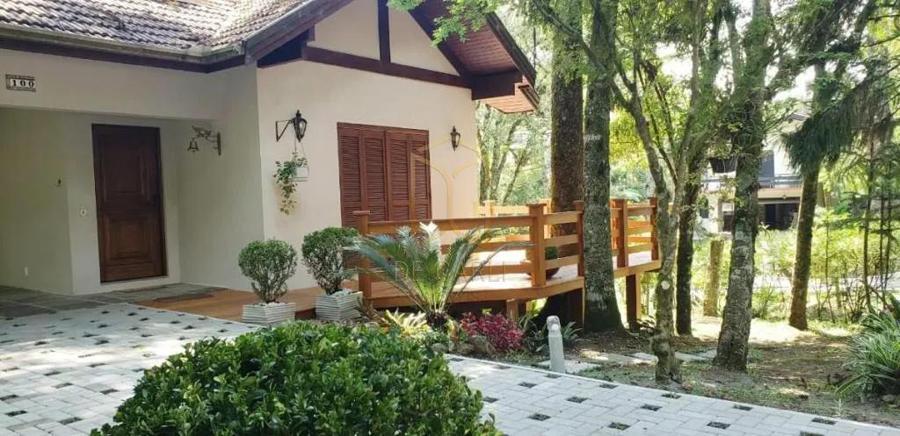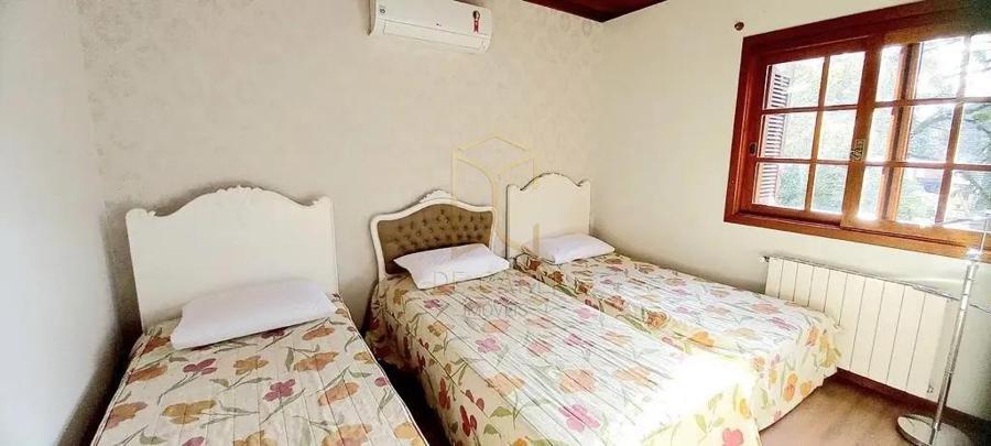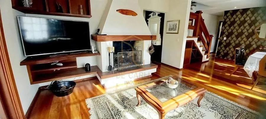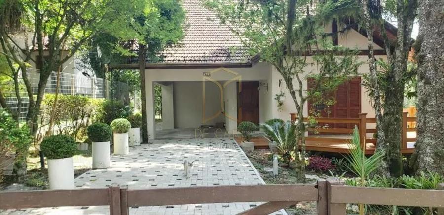 Casa com 04 dormitórios, sendo 02 dormitórios suítes, 1 banheiro social, hall de entrada, sala de estar com lareira e deck em madeira, sala jantar, cozinha separada com churrasqueira, lavanderia separada, calefação, água quente e splits ar condicionado, garagem para 02 carros.
